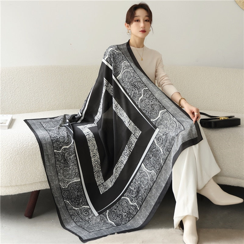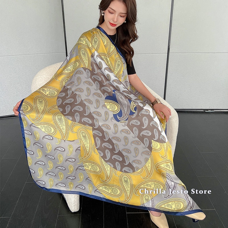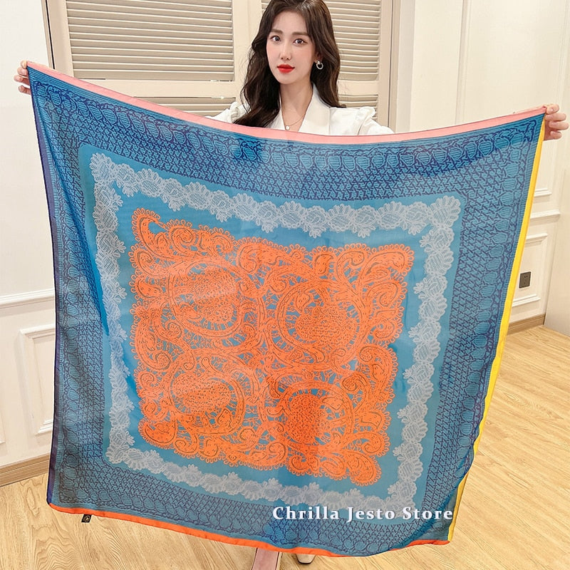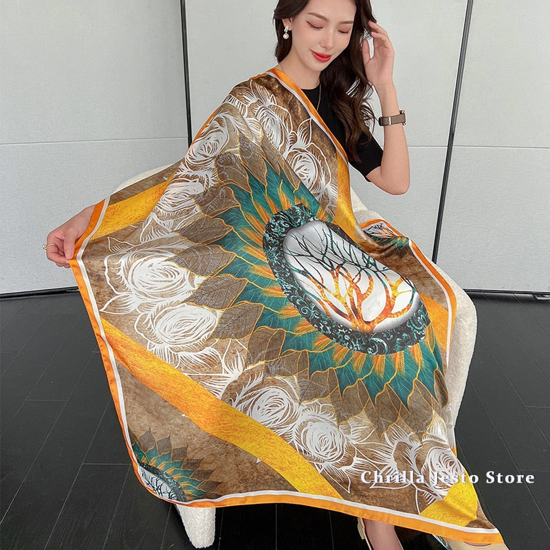 Product Description: 110*110cm Floral Printed Imitated Silk Scarf.