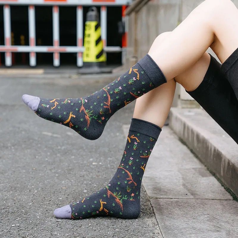 Product Description: New popular French men's and women's round neck socks. Creative leisure funny Harajuku (Japan) art abstract oil painting socks.