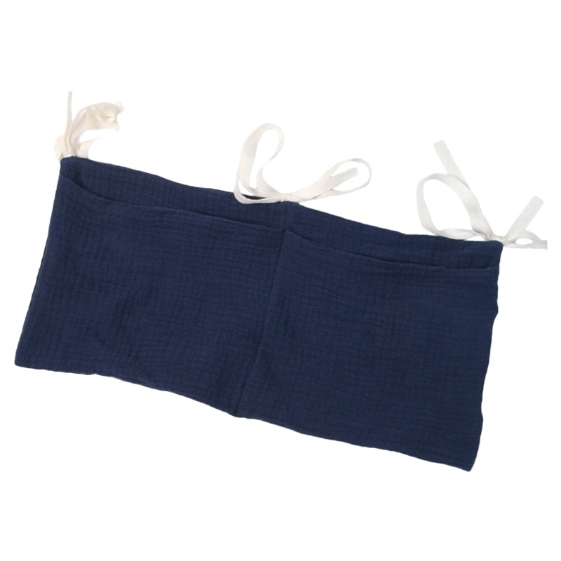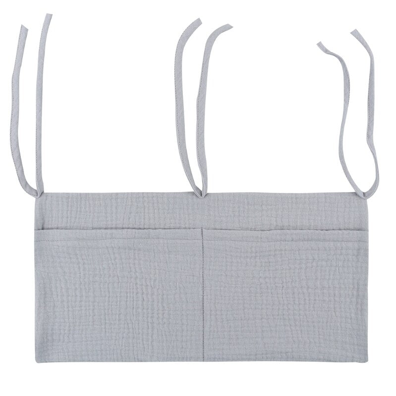 The Cotton crib hanging storage bag is suitable for diapers, pacifiers, tethers, baby wipes, diapers or small toys, etc. You can also put toys, books or whatever you want there.