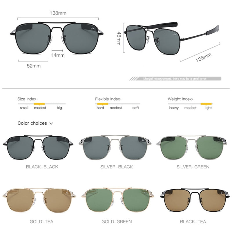 Product Description: Aviation Top Gunner Brand Designer AO Sunglasses.