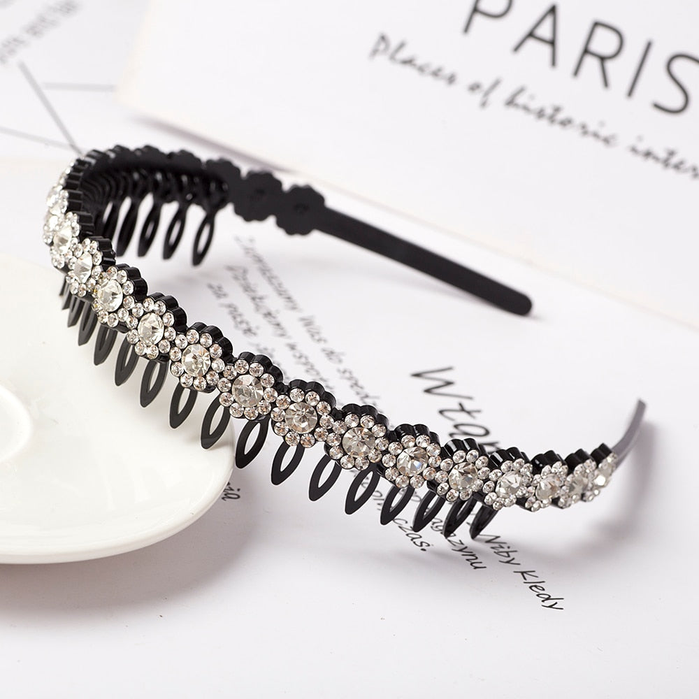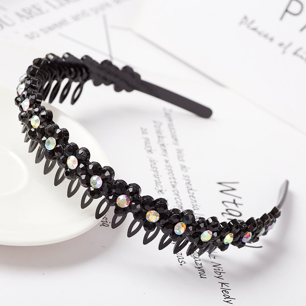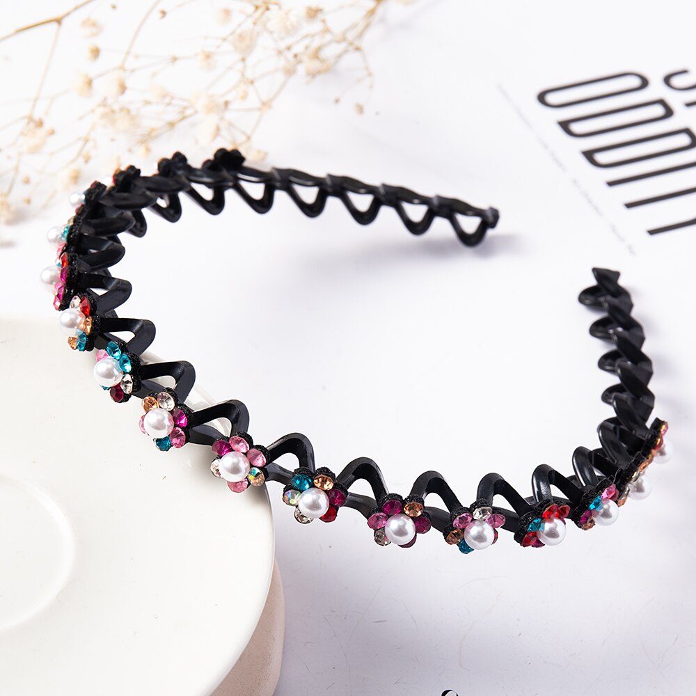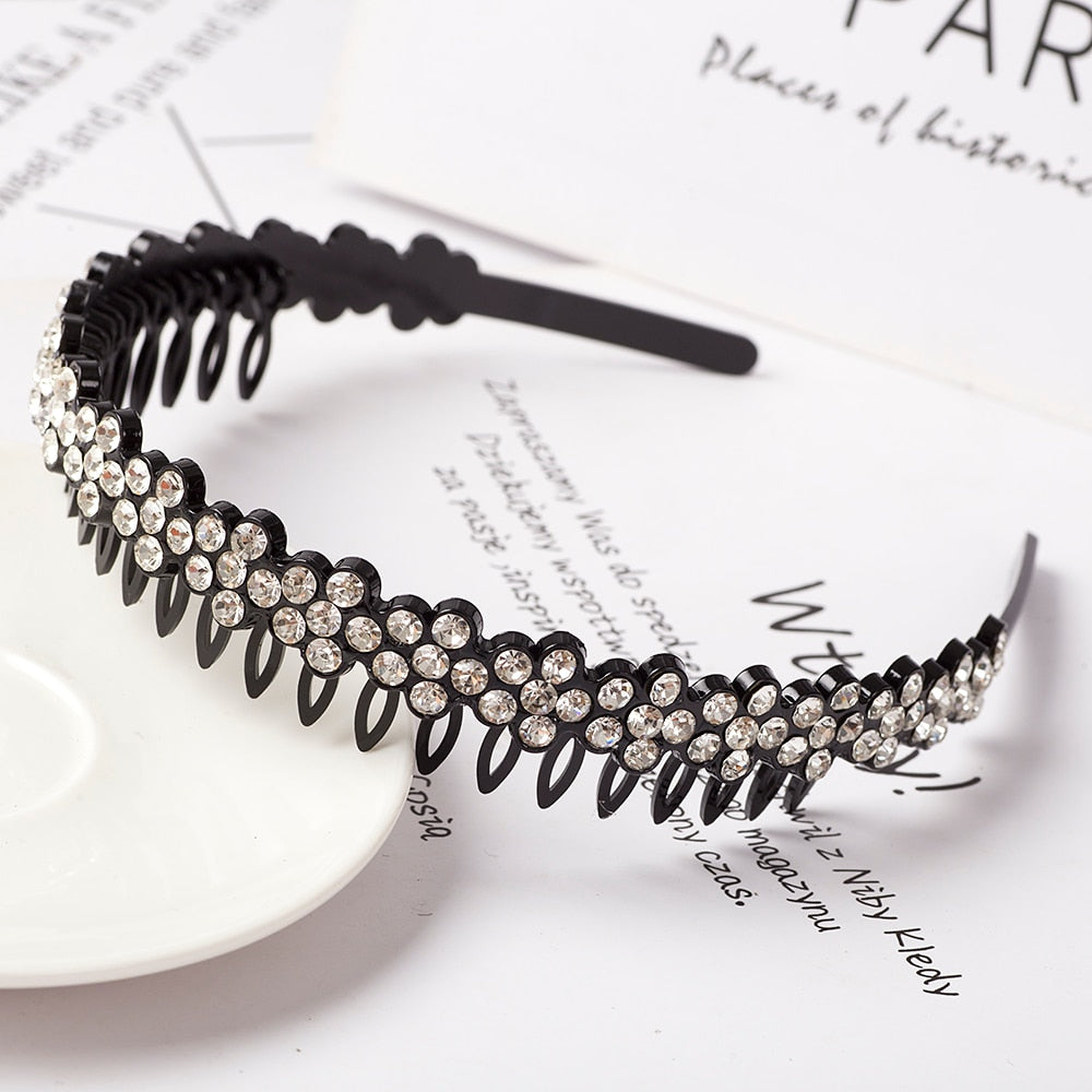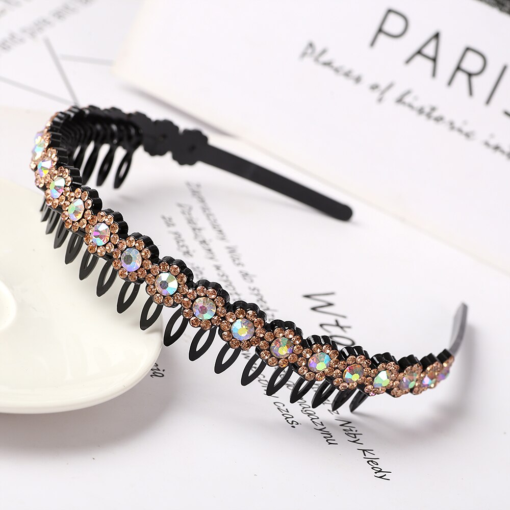 Product Description: Unisex Alice Hairband Bezel Headband Men Women Sports Hair Band Hoop Top Metal Double Bangs Flower Rhinestone Hair Accessories