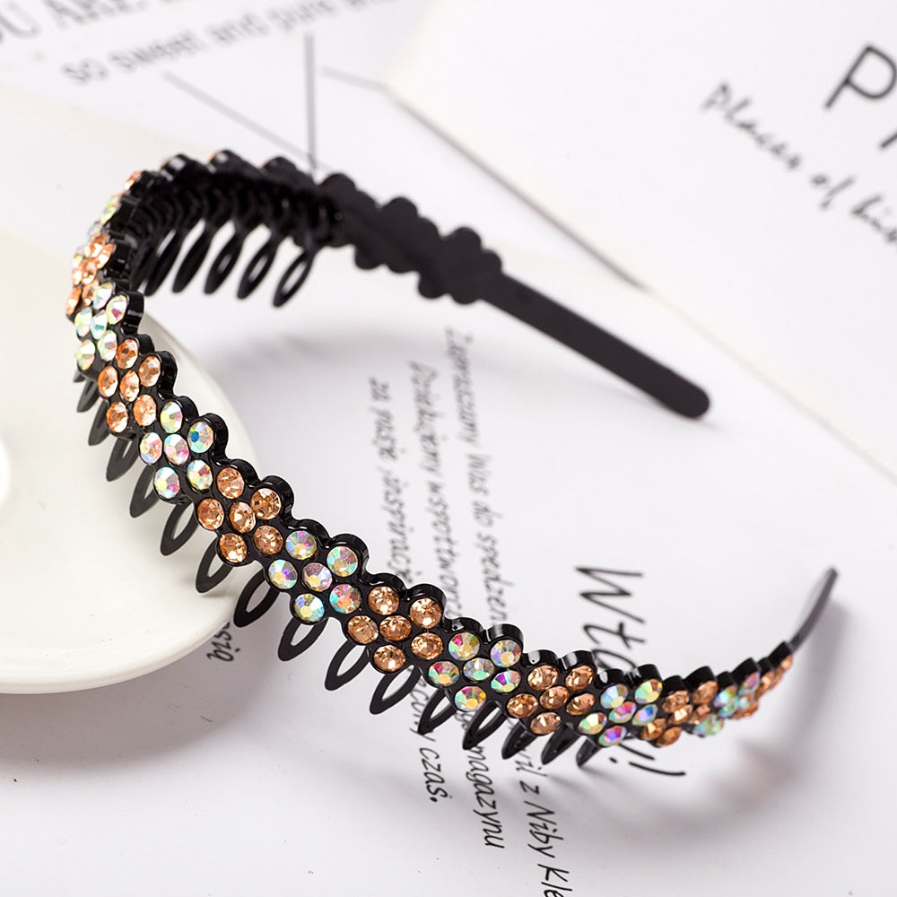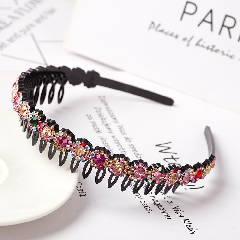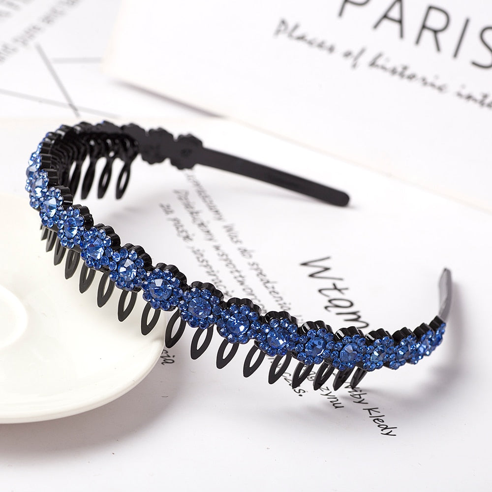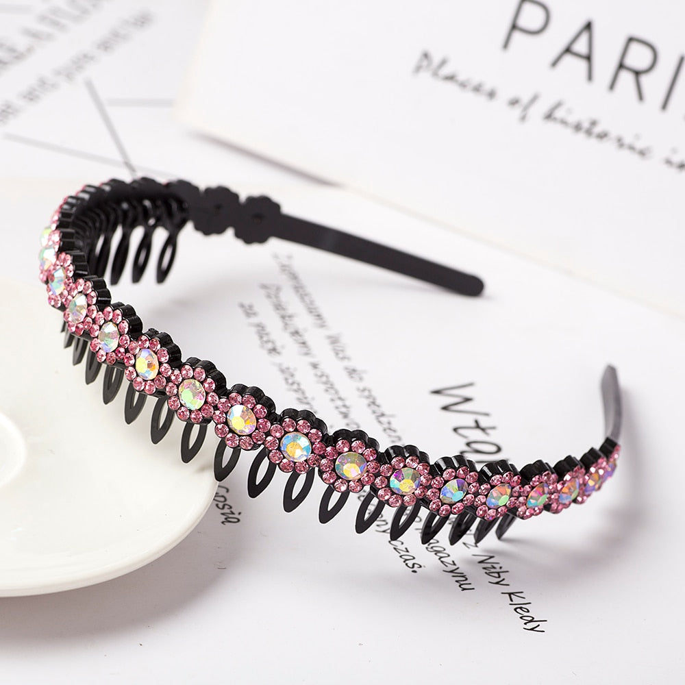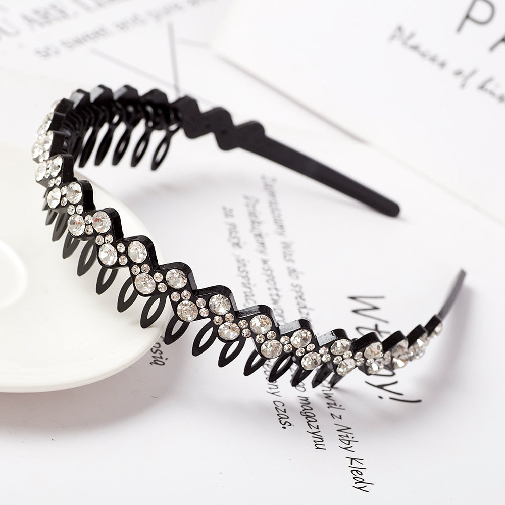 Product Description: Unisex Alice Hairband Bezel Headband Men Women Sports Hair Band Hoop Top Metal Double Bangs Flower Rhinestone Hair Accessories