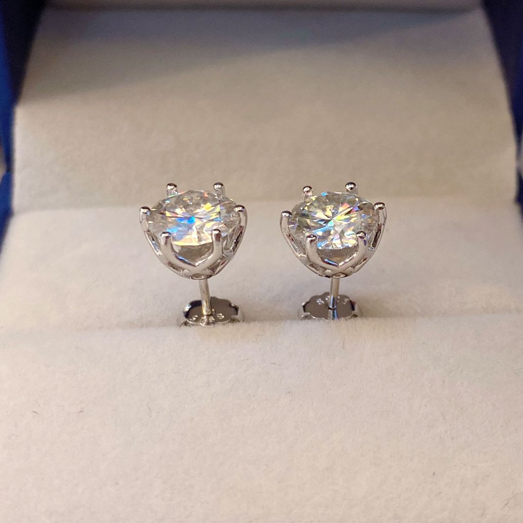 - 2 Carat = 2 pieces 6.5mm/1carat moissanite per stone, total 2ct one pair