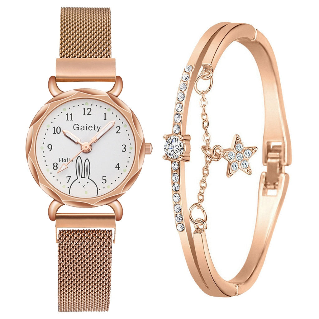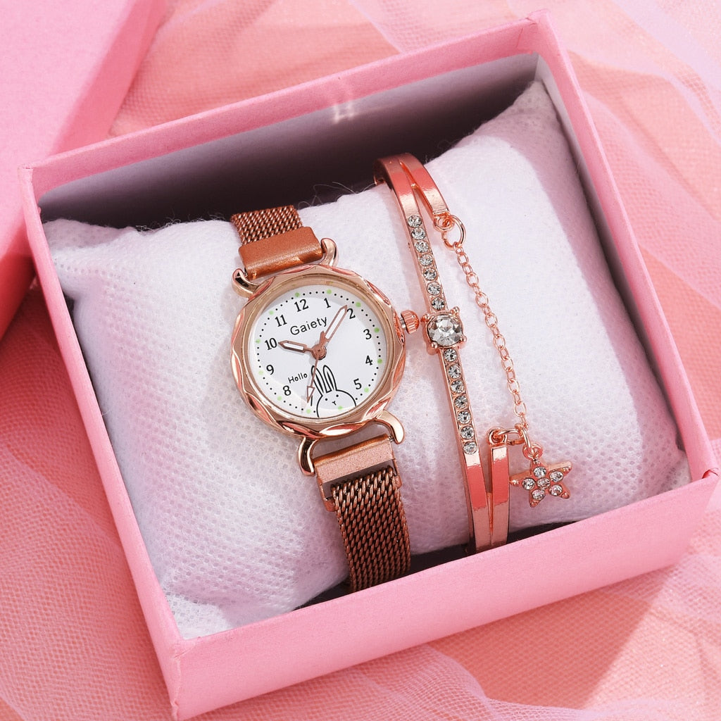 2PCS Set Gaiety Brand. Rhinestone Bracelet Montre Femme watch