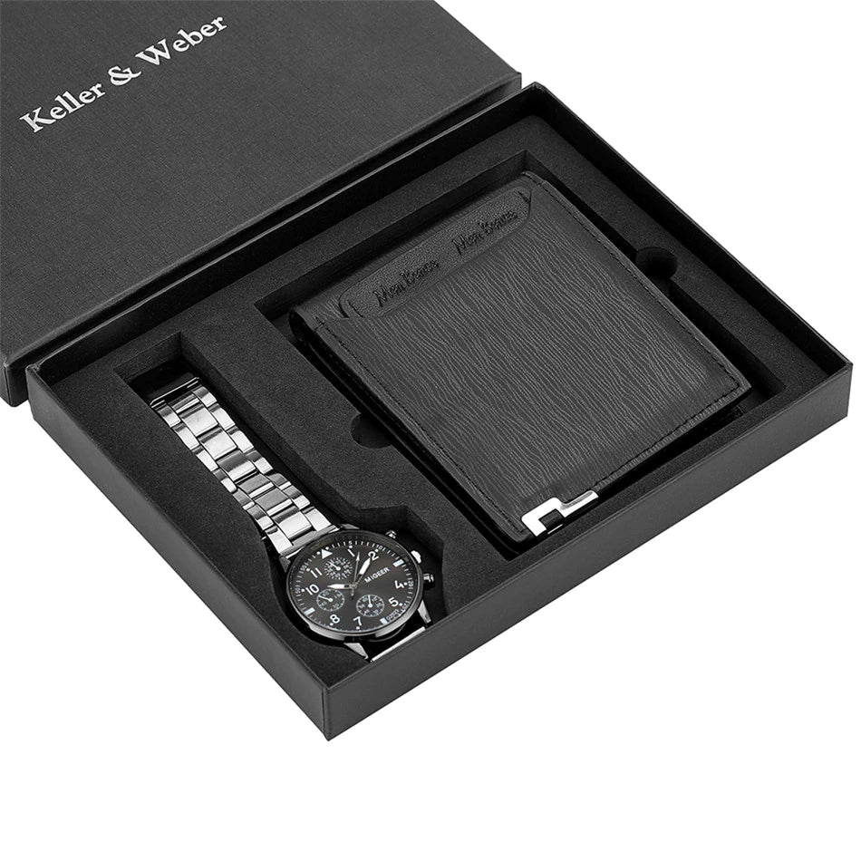 Keller & Weber Men Watch-Wallet Set Present Box