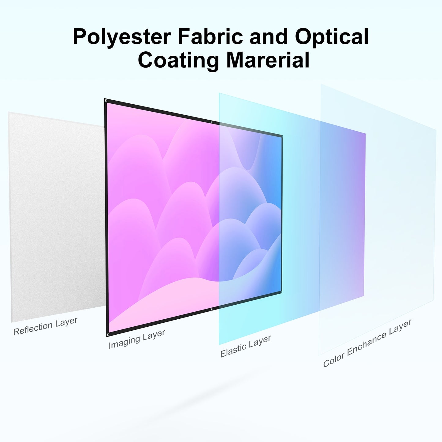 <High Quality Anti-Crease & Foldable>: WEWATCH 120-inch screen made with natural polyester fabric material, the silver gray layer to avoid light penetration, no light loss through the screen material and leaves no creases even when folded or compressed.